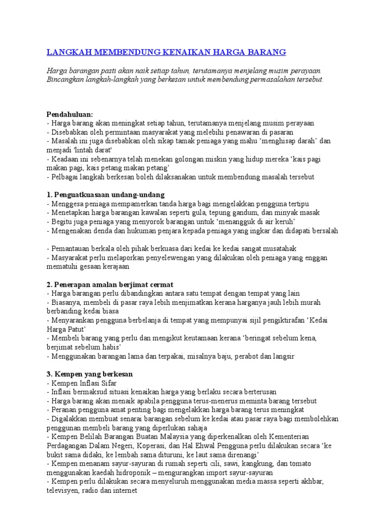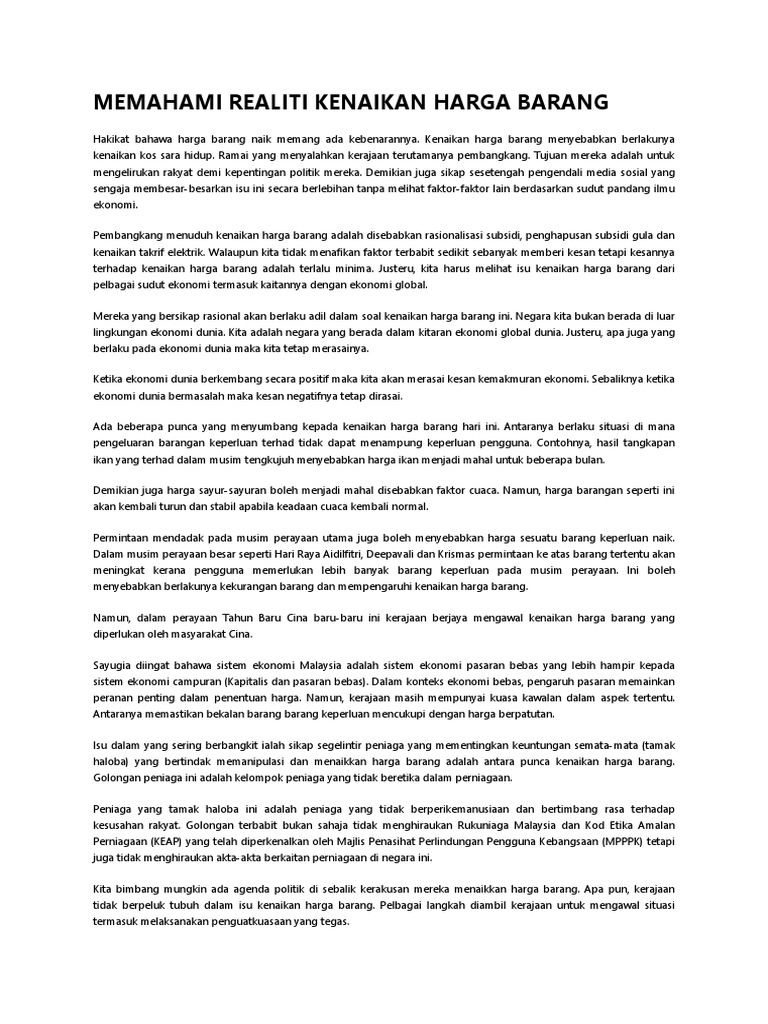 Karangan Punca Dan Kesan Kenaikan Harga Barang Pdf