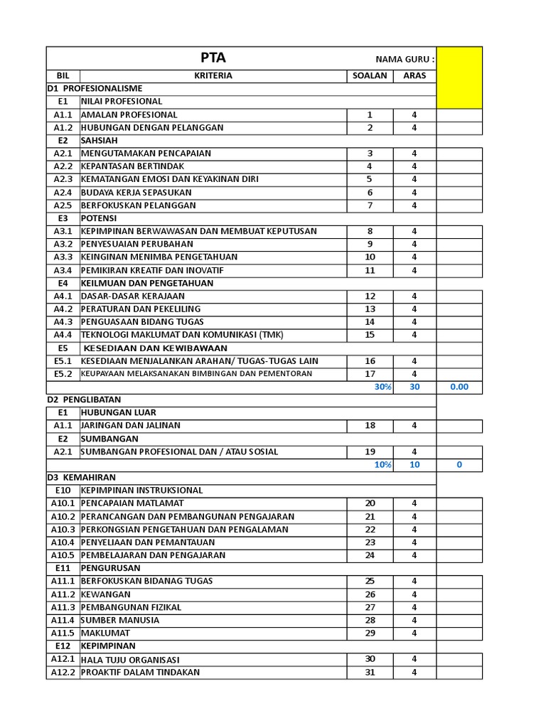 Xls Borang Keberhasilan Guru 2016 Hatta Mohd Hatta Asali Academia Edu